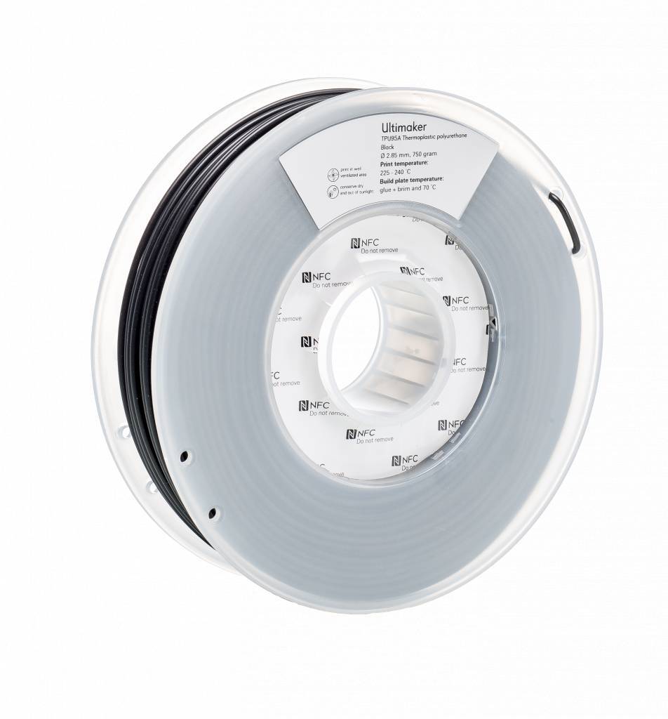 Ultimaker TPU-filament in Shore 95A , TPU-materiaal voor uw 3D-printer . Deze 3D-printer is speciaal ontworpen voor 3D-printen op Ultimaker 3D-printers en is rekbaar, semi-flexibel en chemisch bestendig . Dit filament heeft een sterke laagbinding en is corrosiebestendig tegen vele industriële oliën en chemicaliën. Bovendien is het filament gemakkelijker en sneller te printen dan veel andere TPU-filamenten van andere fabrikanten. Ultimaker TPU-filamenten zijn bijzonder goed geschikt voor functionele prototypes, handgrepen, geleiders, scharnieren, kliksluitingen en beschermende afdekkingen. Het bijzondere aan deze filament: op de spoel zit een NFC-chip, waarmee de Ultimaker3 het omsloten TPU-materiaal direct herkent!